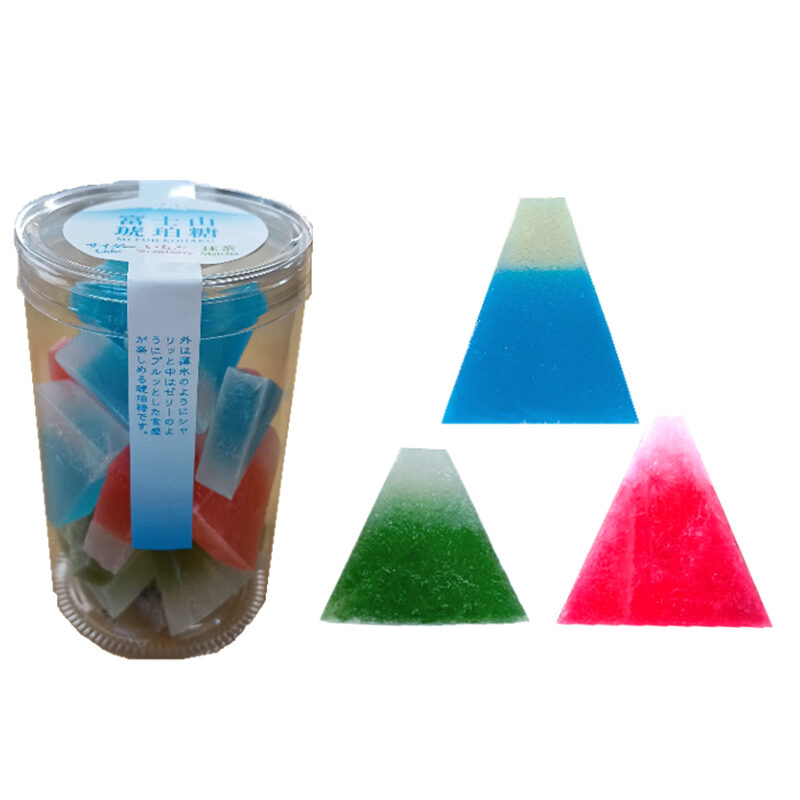 ![]() 富士山琥珀糖 3種アソート 意匠登録第1791658号 (ソーダ・ストロベリー・抹茶味)各150g 本体価格 ¥1300 ¥1404(税込) | 富士山の琥珀糖は見た目も鮮やかで一際目立つ存在感のある商品です。 外はシャリっと中はプルっとした不思議な食感が楽しめます。 味はいちご、ソーダ、抹茶の3種類のフレーバーをお楽しみ頂けます。 |