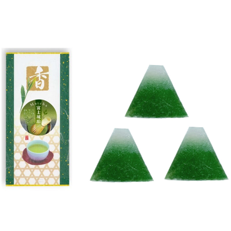![]() Matcha 抹茶富士琥珀(袋入) 意匠登録第1791658号 (抹茶味)約100g 本体価格 ¥800 ¥864(税込) | 抹茶の富士山琥珀糖は見た目も鮮やかで一際目立つ存在感のある商品です。 外はシャリっと中はプルっとした不思議な食感が楽しめます。 パッケージは本物の茶袋を使用し「これお茶!?お菓子!?」という興味を惹くデザインに仕上げました。 |